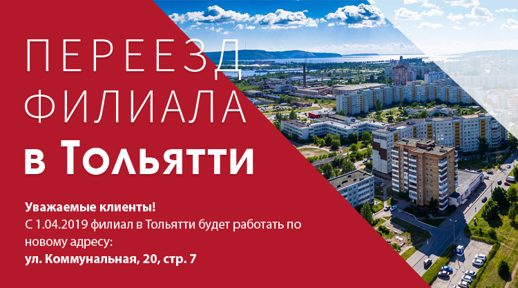 С 1 апреля филиал в Тольятти будет работать по новому адресу ул. Коммунальная, 20, стр. 7.